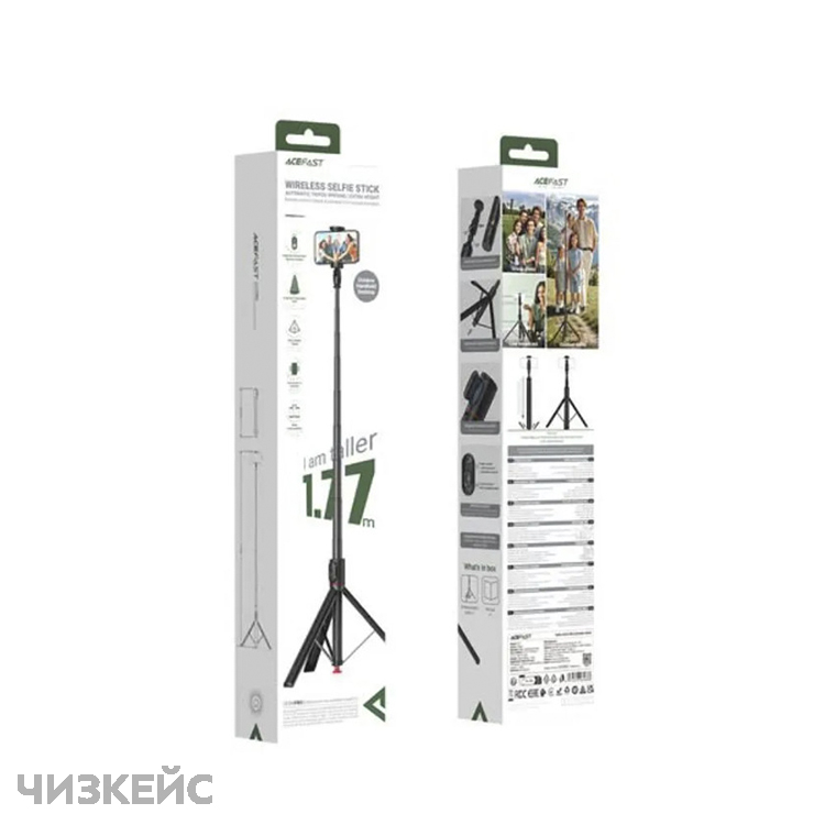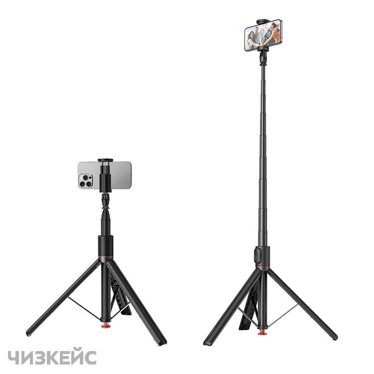 телескопическая штанга 1.77 м, алюминиевый корпус, съёмный Bluetooth-пульт, совместим со смартфонами |